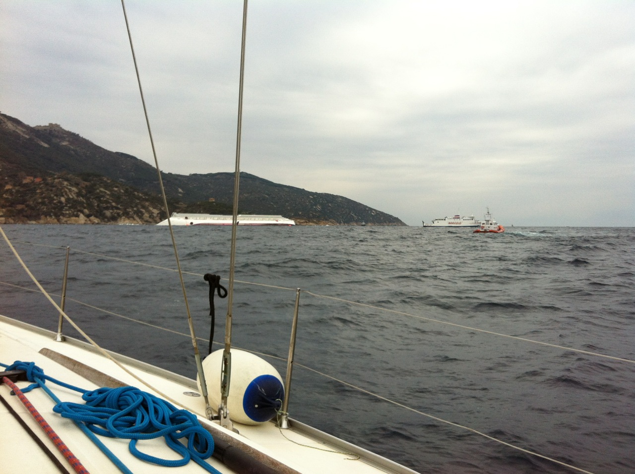 Il giorno dopo vidi il relitto spiaggiato e subito pensai a come potesse essere stato stupido il comandante a cacciarsi in un guaio simile. Due giorni dopo, 36 ore dopo il naufragio, ero su una barca a vela, in preda al mare mosso, con un amico giornalista di Bloomberg, in direzione Giglio.